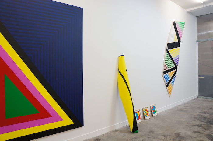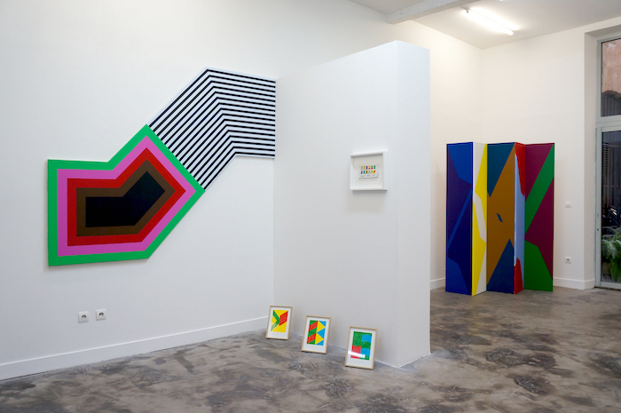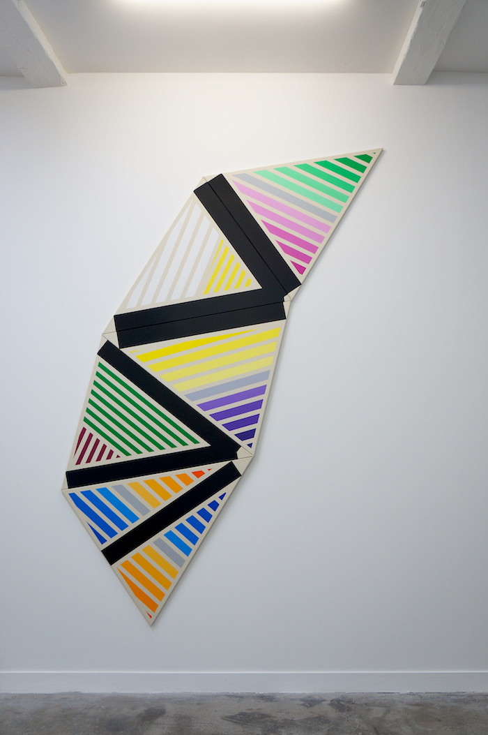 Ses toiles présentent des plages strictement contenues en blocs dont l’organisation tend à tordre le pictural en sculptural, parfois dans l’illusion mais encore d’avantage par la solidité et la présence de ces «objets visuels». Plus qu’accrochés, ils vont être manipulés et agencés dans l’espace-temps de leur exposition, considérant alors de la même manière les supports et les surfaces comme autant de lieux composés d’objets. En cela Sebastien fusionne habilement le sujet-peinture destiné au regard avec l’objet-peinture destiné au mur.